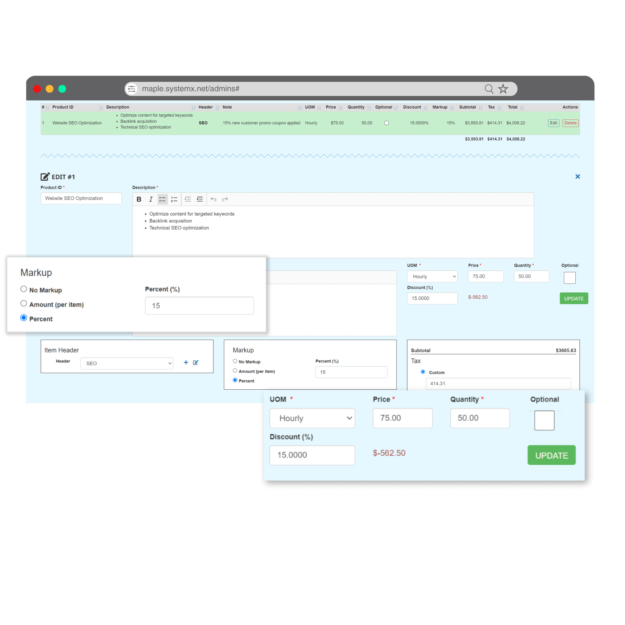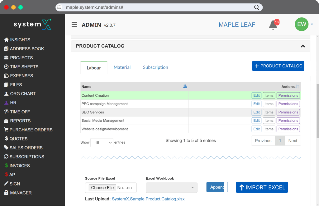Streamline quote creation by importing or connecting your product catalog with SystemX